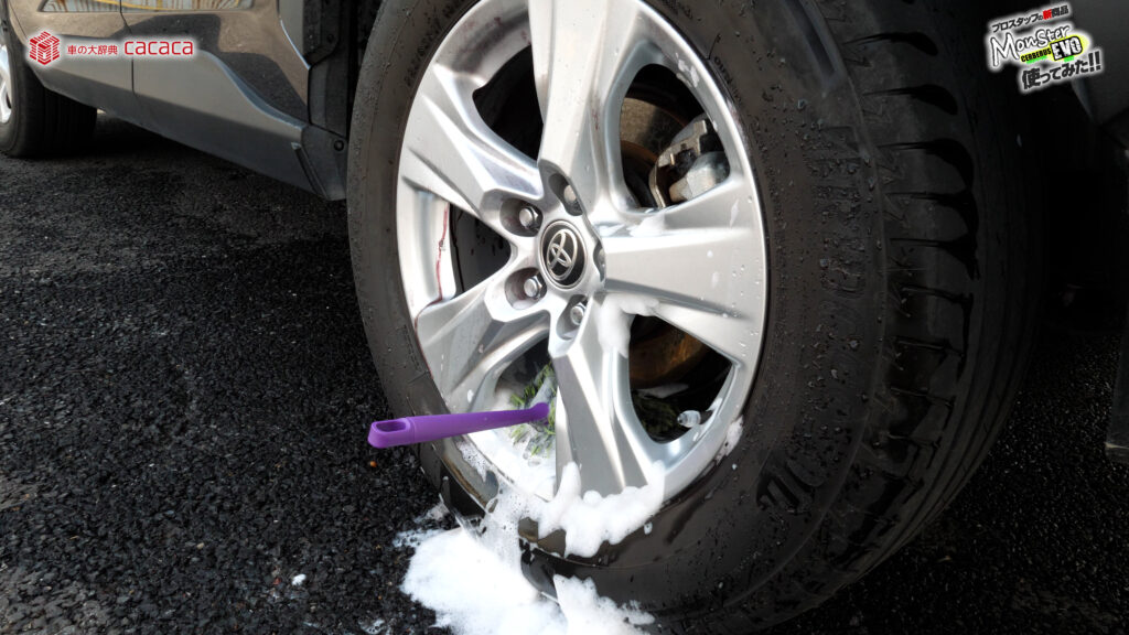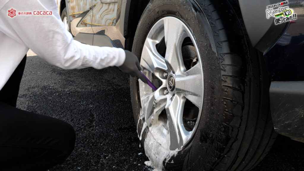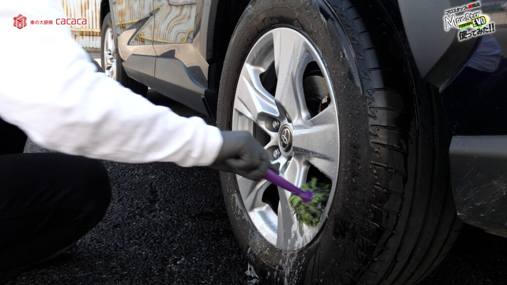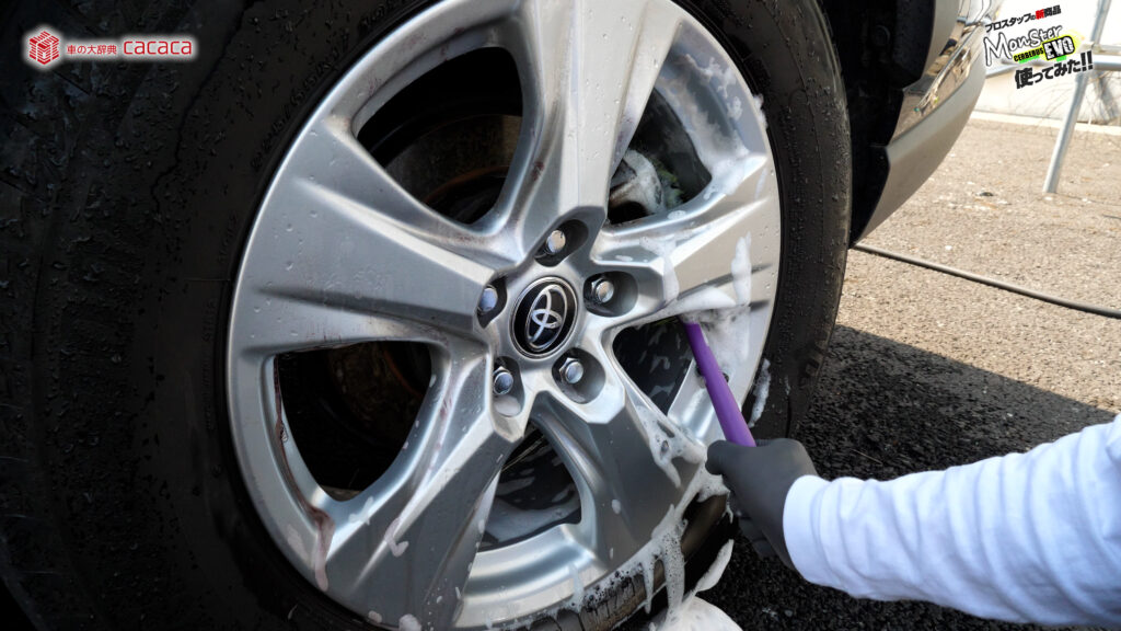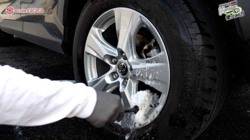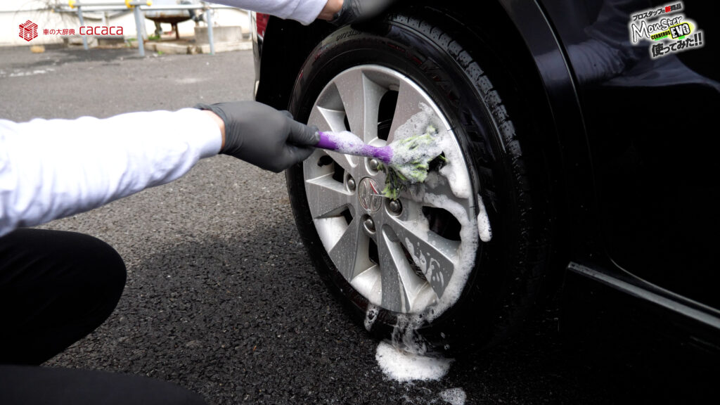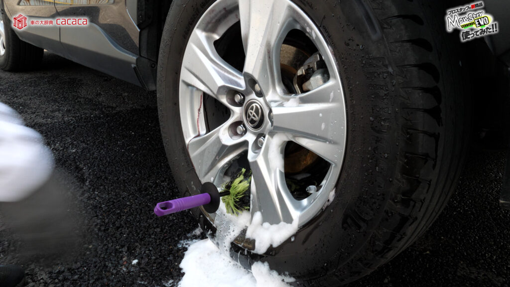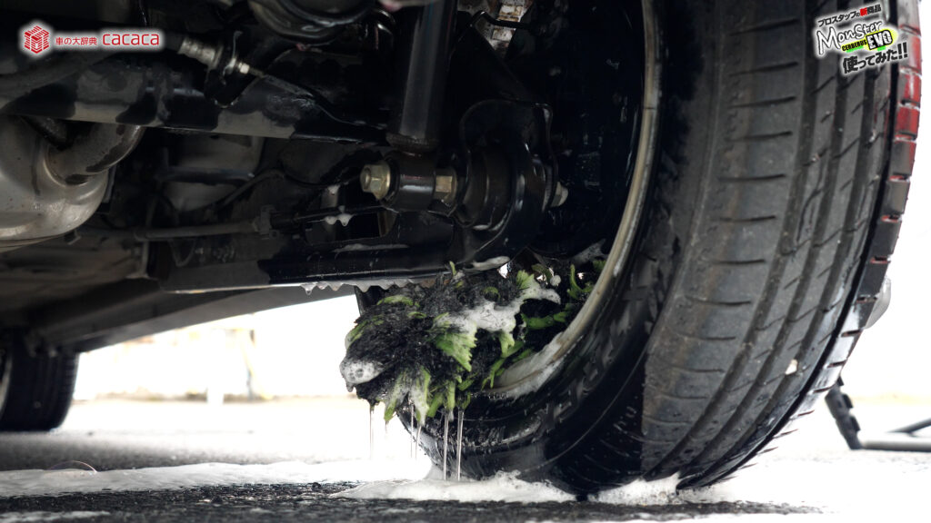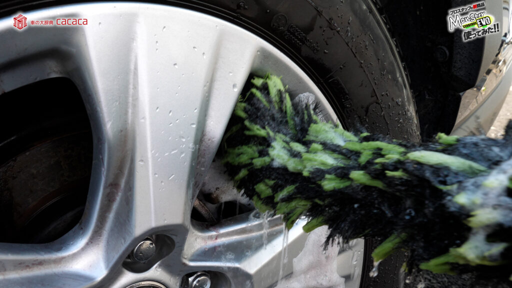 ホイールこのままやるとガリッってホイール傷付くので、ホイールブラシキャップ付いてるタイプの1つ注意点なんだよね。