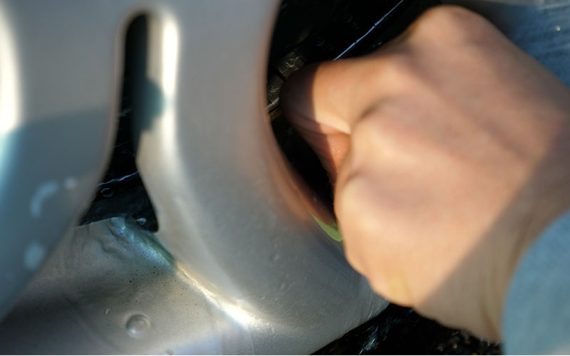 『ムートン』で洗って、『マグナショット』をもう1回吹きかけます。