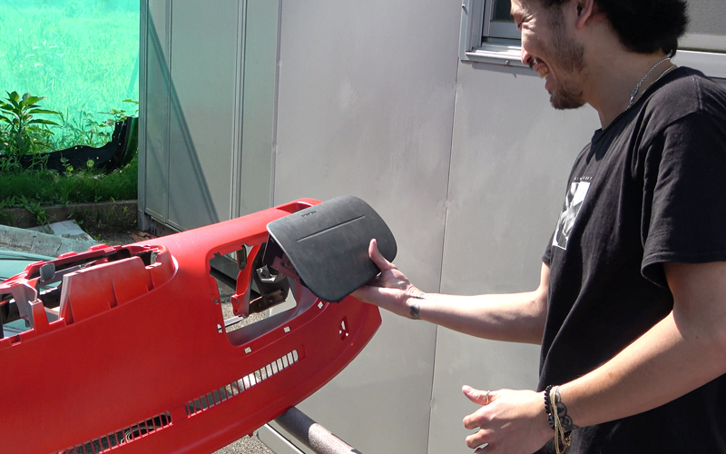 岩佐選手:あとは取り付けるだけと思ったんですけど…これ! エアバックのカバーのところ!