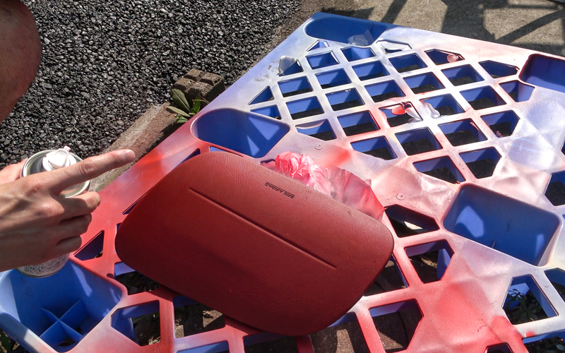 エアバックのカバー部分を塗装し忘れたので、急遽ラバースプレーで応急処置。