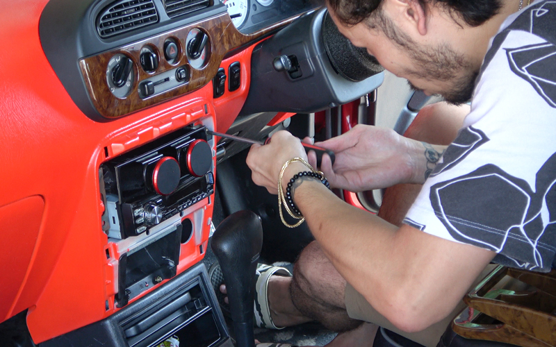 岩佐選手:僕の可愛い可愛いミラジーノの内装をDIYで真っ赤にしたいなと思いまして…でも1人じゃ難しいんで