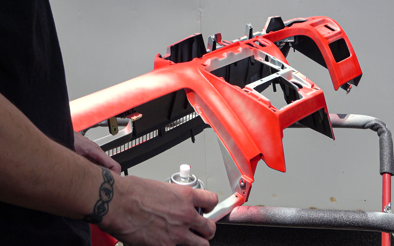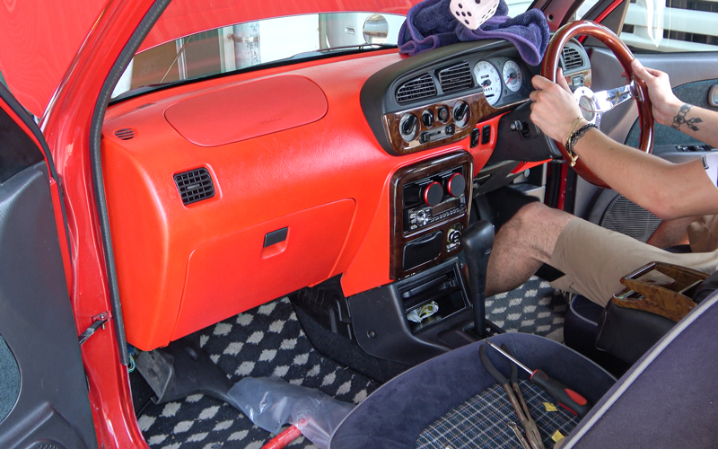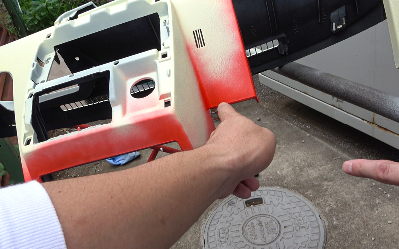 ダッシュボードの色が黒なのでベースコートは白を塗ることで、最終的に綺麗に赤色を出すことができます。