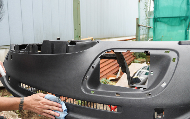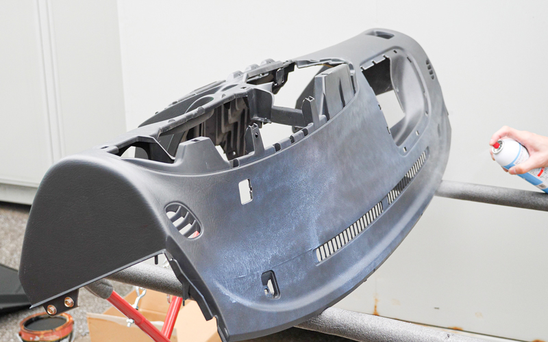 塗装する前にシリコンオフでダッシュボードを拭き十分に脱脂することで油分が残りにくい上、塗装した時に剥がれ落ちにくくなります。