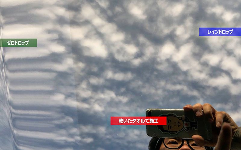 乾いたタオルで施工した面の艶が1番かなと思っていたので、『ゼロドロップ』の意外な結果に驚きました。