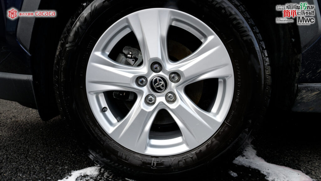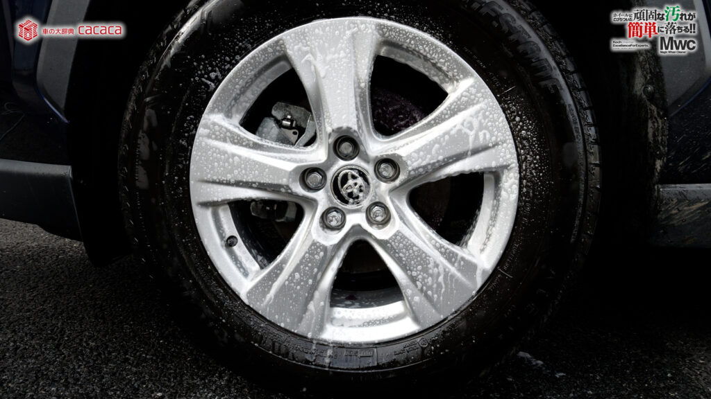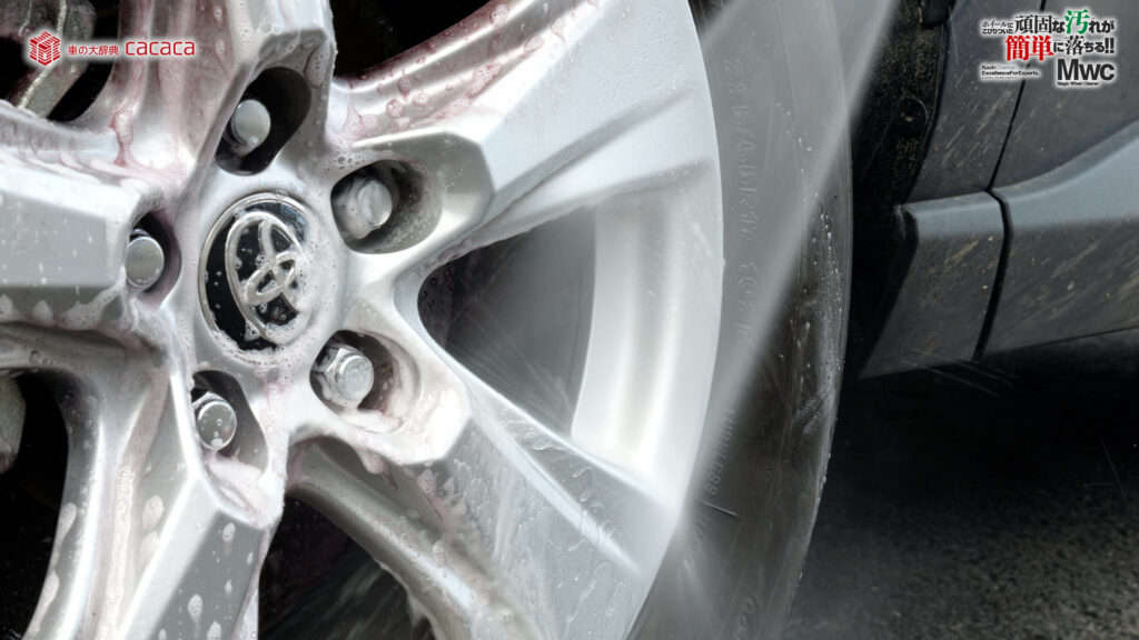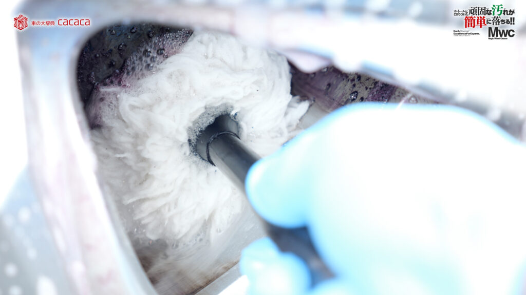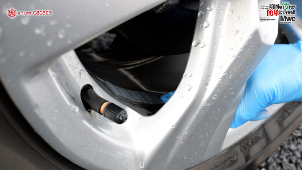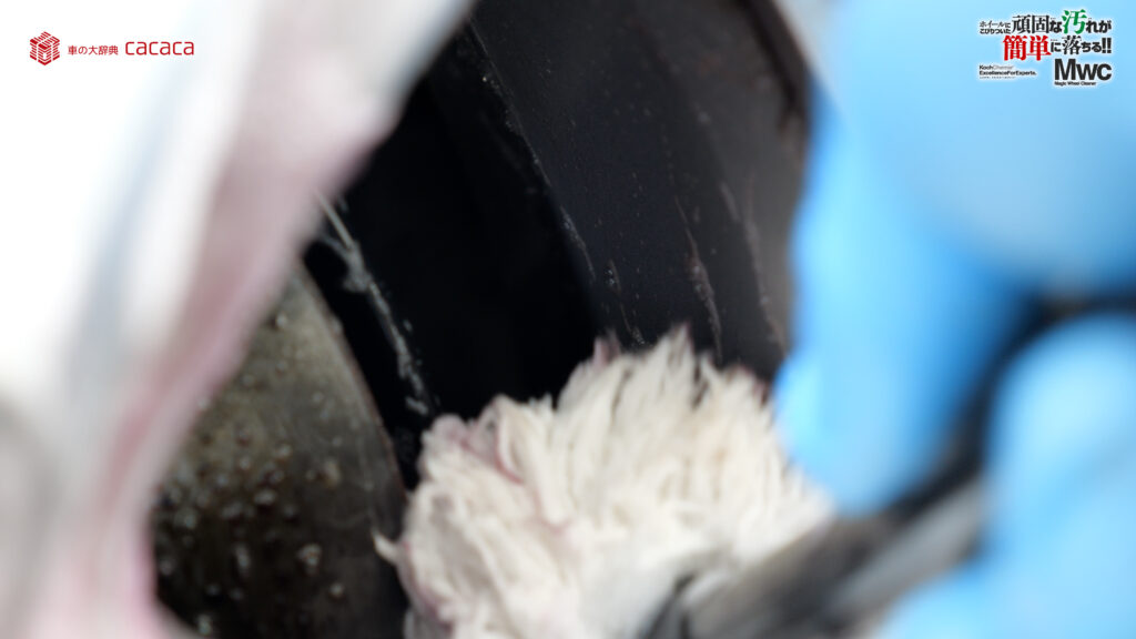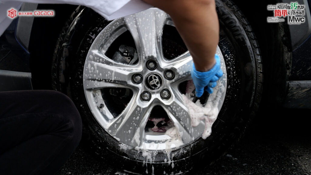 運転席側の後ろ側のホイールを洗っていきます。