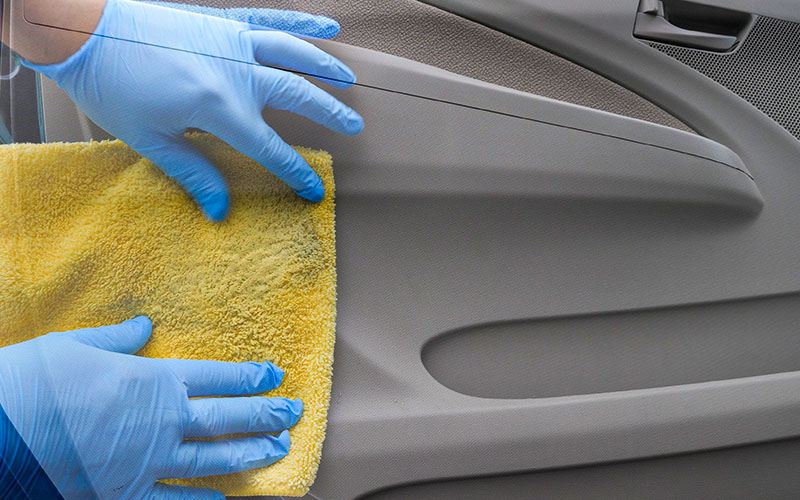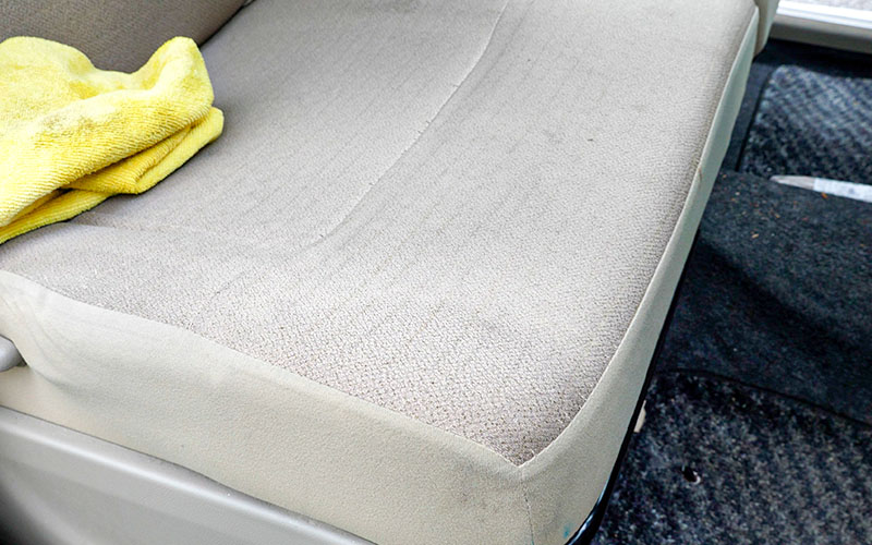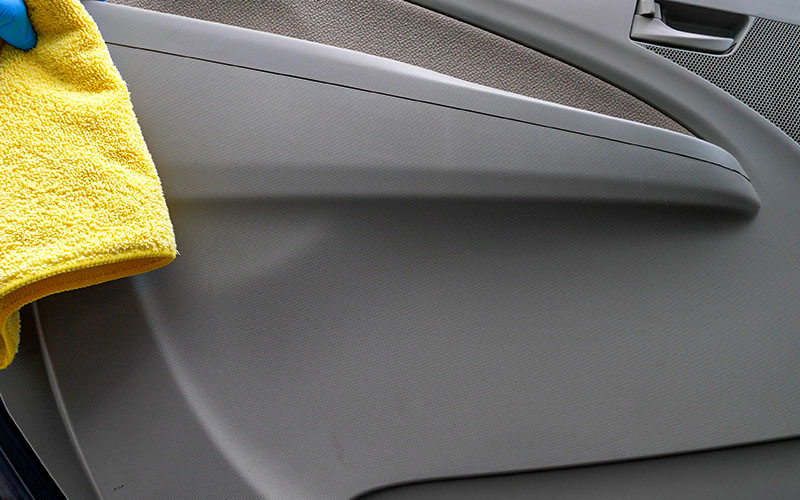 タオルに内装用に希釈した『マイペット』を吹きかけて、絞ったような感じにしたら拭きます。