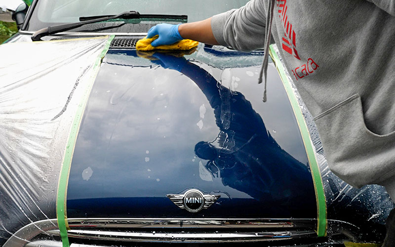 こちらの車には左側に日本磨料工業の『グラスターゾルオート』右側に『プレクサス』施工されているので、養生して、コーティングが落ちるのかどうかも見ていきます。