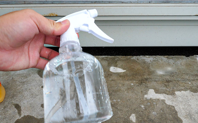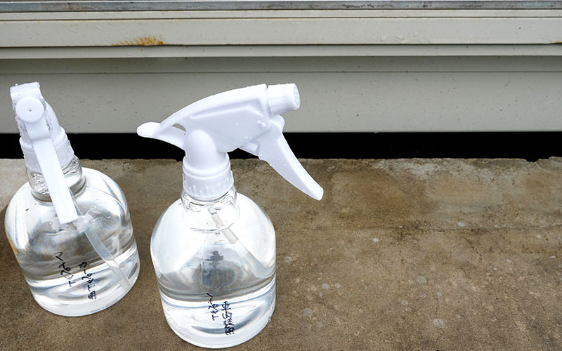 『マイペット』は必ず水で薄めてから布等をひたして使わないといけないのですが、内装掃除でバケツを使うのは現実的ではないと思ったので、ダイソーで購入した500mlのスプレーボトルを使って施工したいと思います。