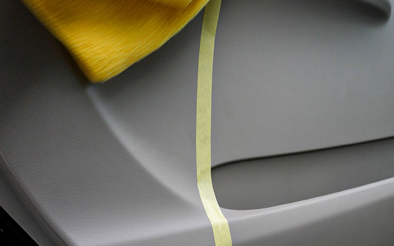 タオルが黒くなっています。思ったよりこの車汚いな。マスキングーテープを貼って、差を見比べてみます。