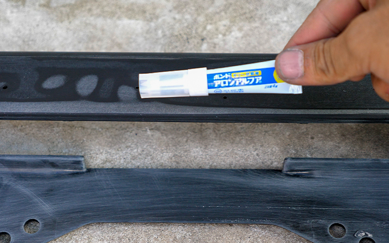 それで、知り合いの板金屋さんに相談したところ…アロンアルファ(ゼリー状)が良いという助言をしてくれたのです。