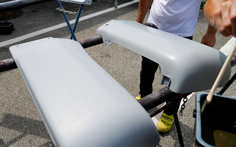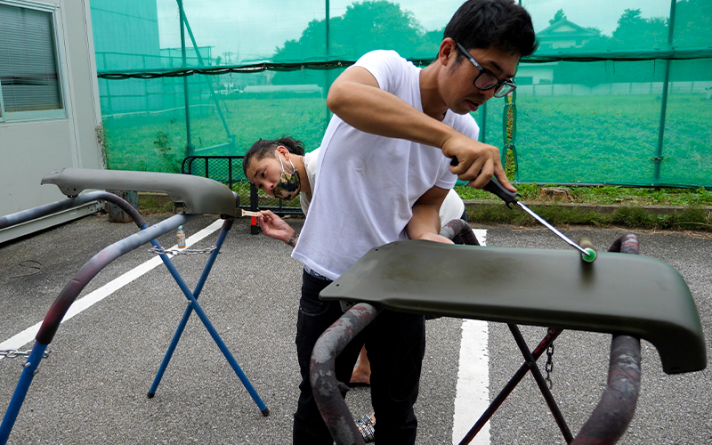 岩ちゃん:この塗装って、実は最初に2人で話した時は細かいパーツは外さずに塗っていこうって決めてたはずなんだけど、何故かしのピーが勝手に外し始めちゃったよね。笑