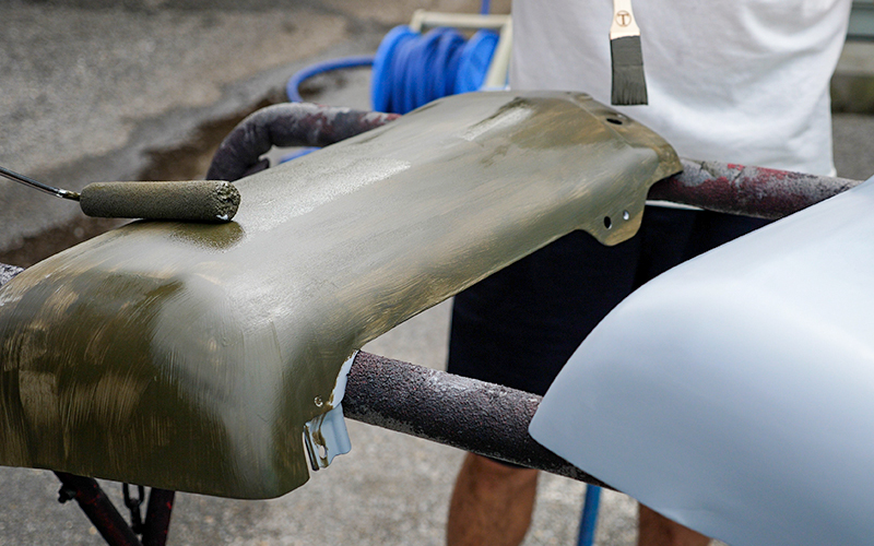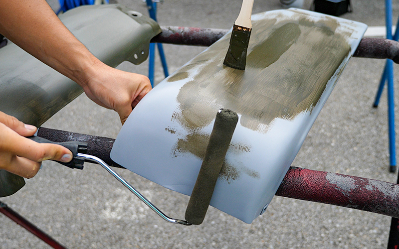 乾かしている間に、他のパーツも塗っていきます。こちらもさっきと同じくハケとローラーで重ねるようにどんどん塗料を塗り込んでいきました。
