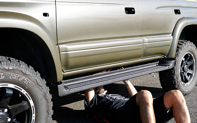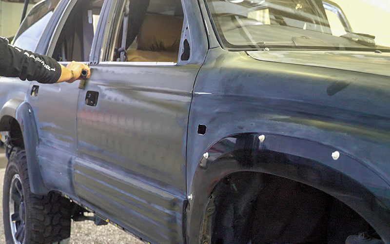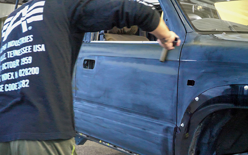 今回は、岩ちゃんのサーフを全塗装したいということで僕もお手伝いさせてもらいました。使った塗料は、タカラ塗料の水性塗料で刷毛とローラーを使って塗ってみました。