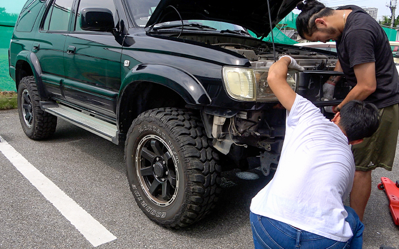 岩ちゃん:そうなんだよね、でも元々全塗装車だから塗装も限界がきていたんですよ。なので、車の大辞典cacacaのしのピーに手伝ってほしくて来ました!