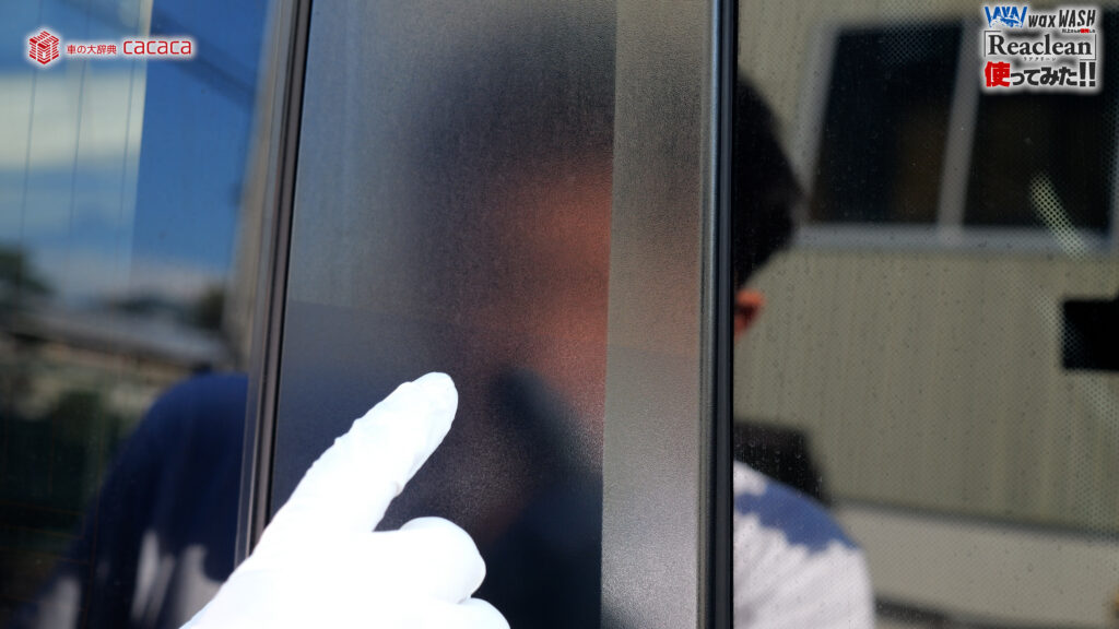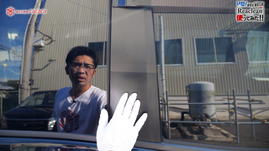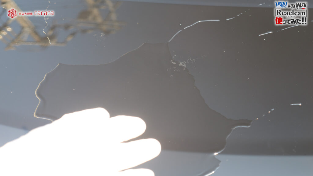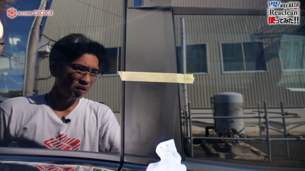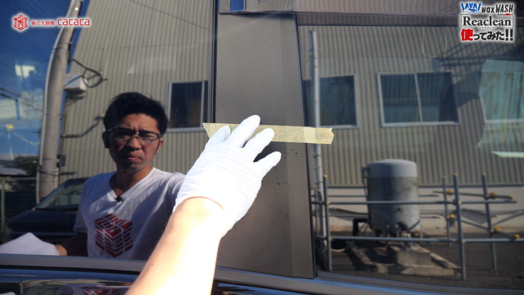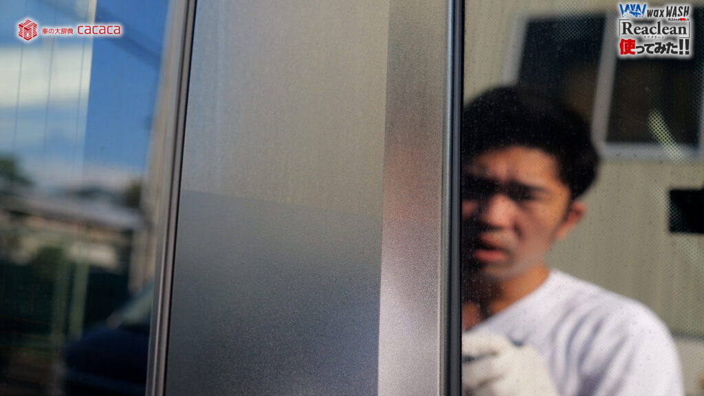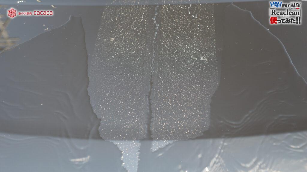 理由としては、左右違うワックスだったりコーティング剤を施工してたはずなので、それぞれちゃんとリアクリーンの効果が発揮されるかどうか、確認していきます。
