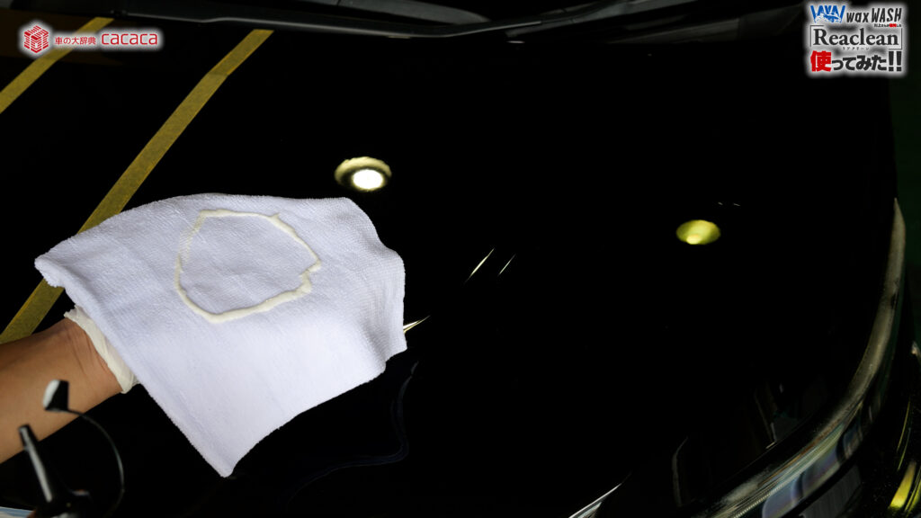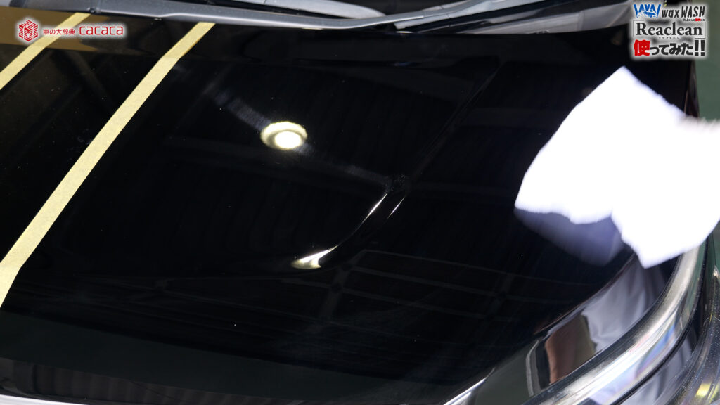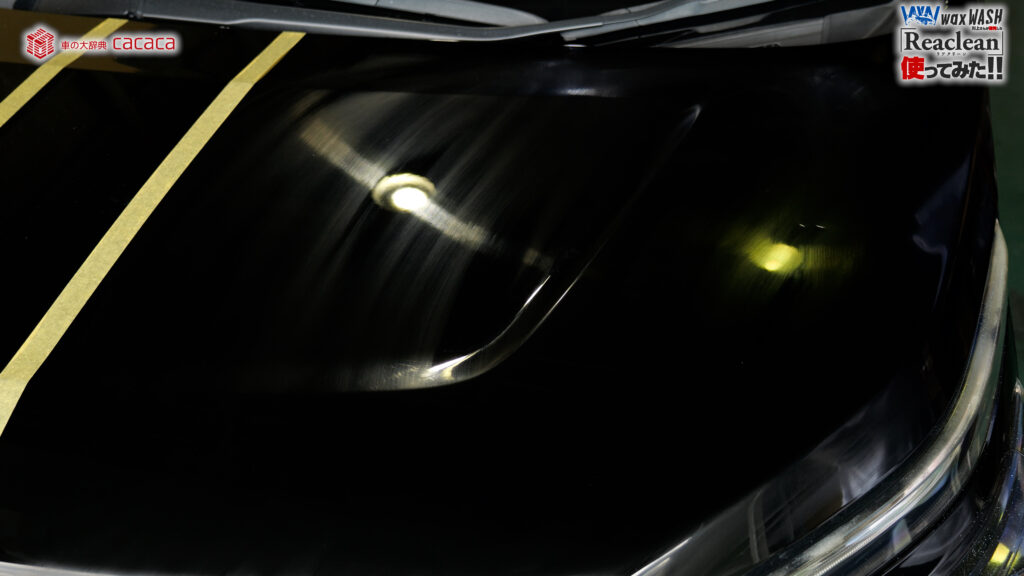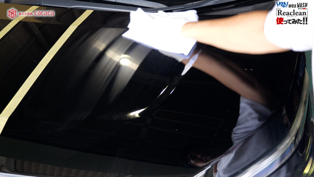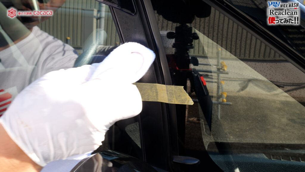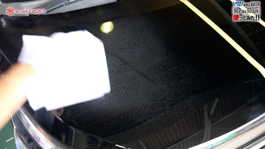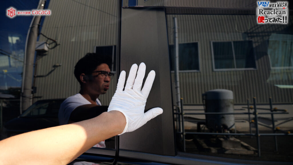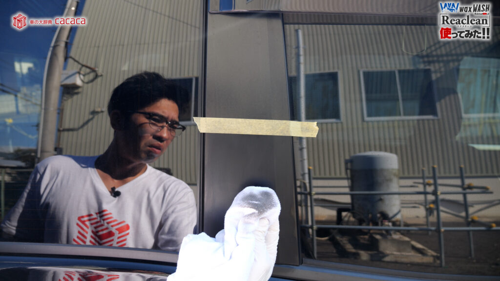理由としては、左右違うワックスだったりコーティング剤を施工してたはずなので、それぞれちゃんとリアクリーンの効果が発揮されるかどうか、確認していきます。
