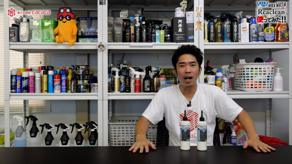 今回はこちら。皆さんご存知でしょうか? ワックスウォッシュ川上さんが開発した『リアクリーン』というメンテナンスクリーナーですね。