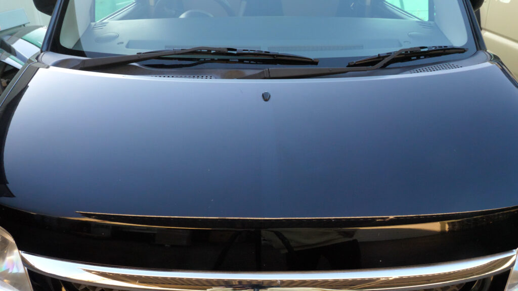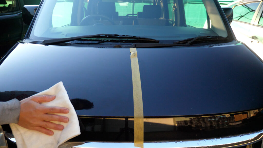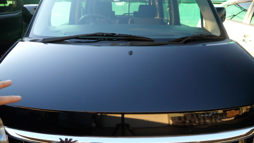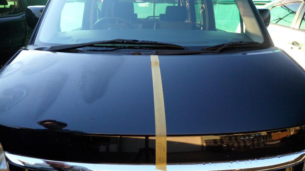 そうしたら外にやっていきました。今回はこのボンネットに施工していこうと思います。ワゴンRですね。