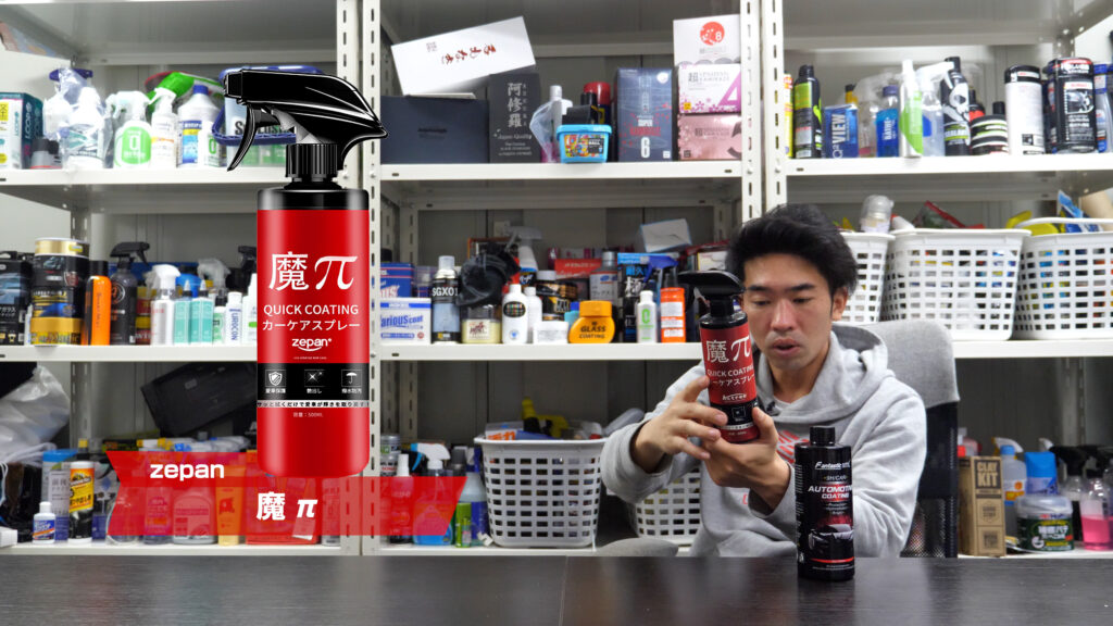 そうなんですよ以前にご紹介したこの『魔π』ですね。クイックコーティングこれと非常によく似ているト言うことで水弾きの違いとかもちょっと比較していけたらいいかなと思います。