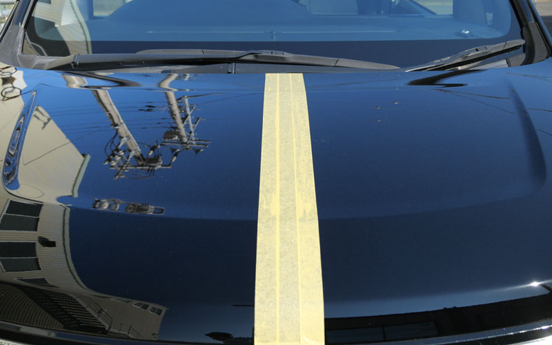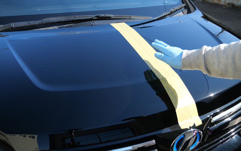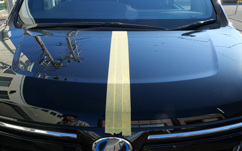 マスキングテープをボンネットと真ん中に貼りました。