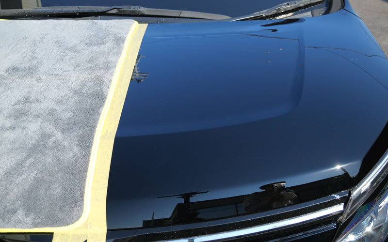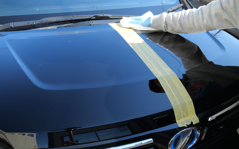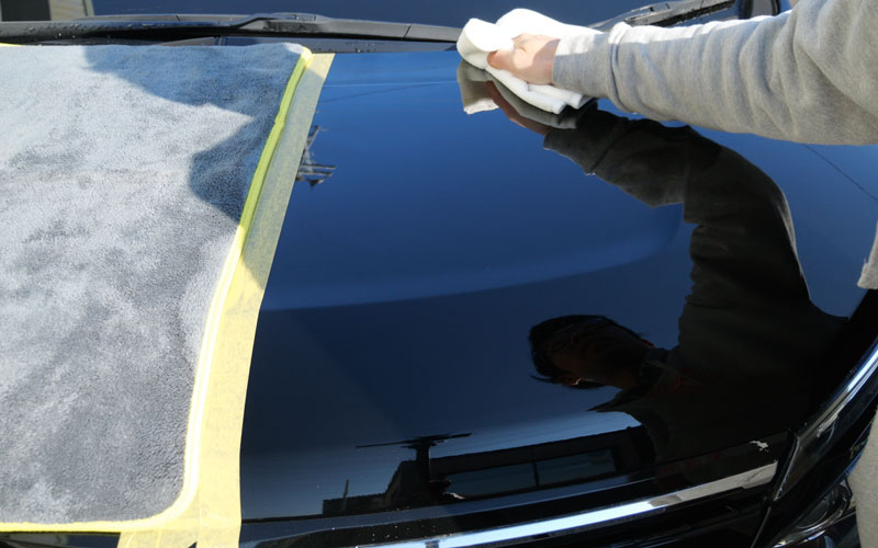 拭き上げてから、右側(助手席側)に「No.13」を施工していきます。ちなみに「No.13」方は、湿式(ボディが濡れた状態)でも使用可能です。