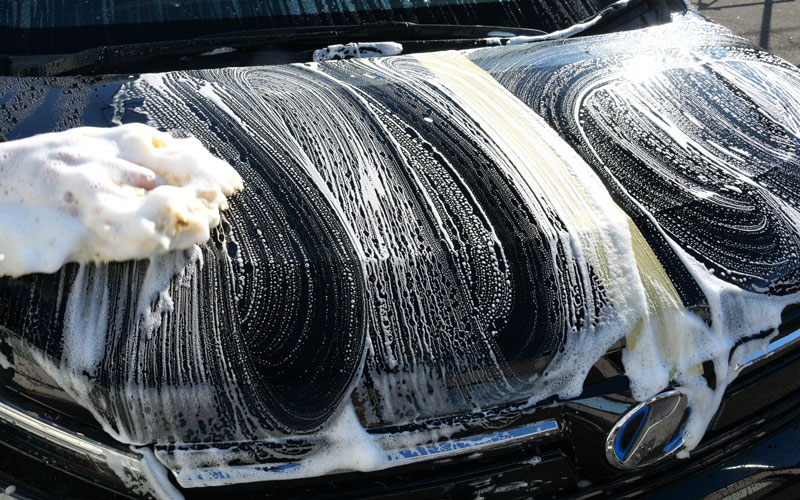 ① 洗車後、乾いたタオルで表面の水分を完全に拭きとってください。