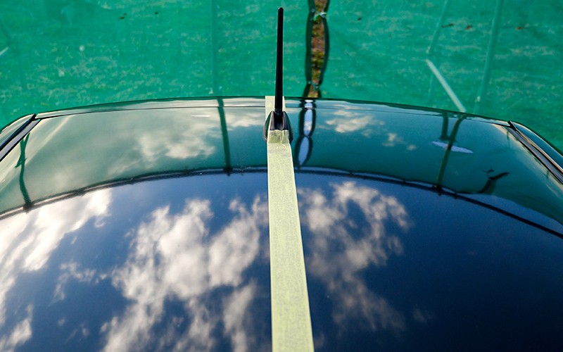 ボンネットはコーティングを落とすために下地処理をしましたが、ルーフは洗っただけの状態です。施工中に若干水アカを見かけたので、これがどのように影響するのかも気になるところです。