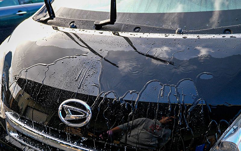 ボンネット全体が親水状態になり、水の膜が全体を覆っている状態になりました。そのため少しでも水を弾くようになったなら、それはそこに施工したものの効果ということになります。