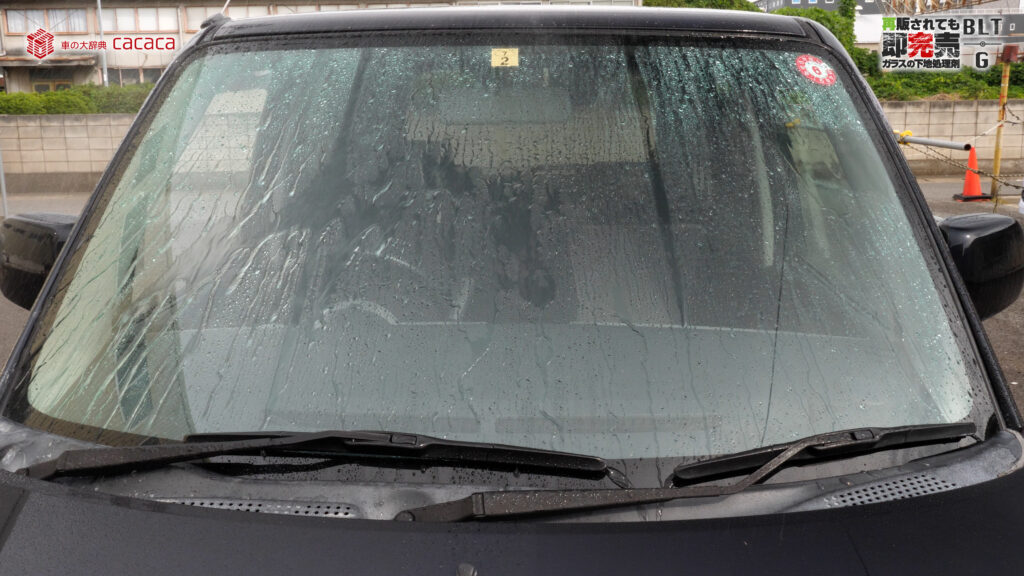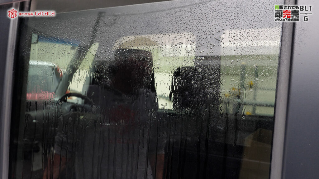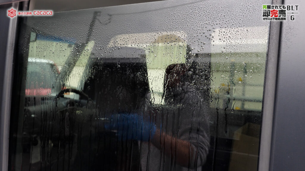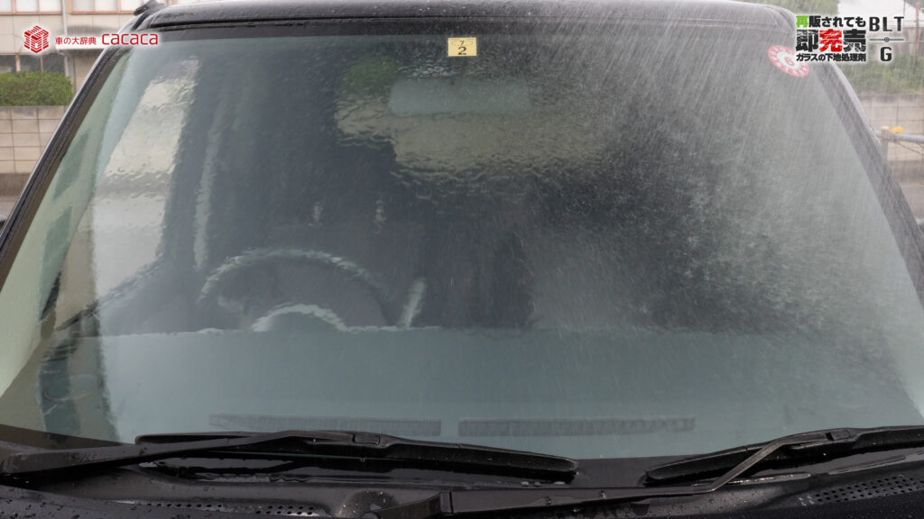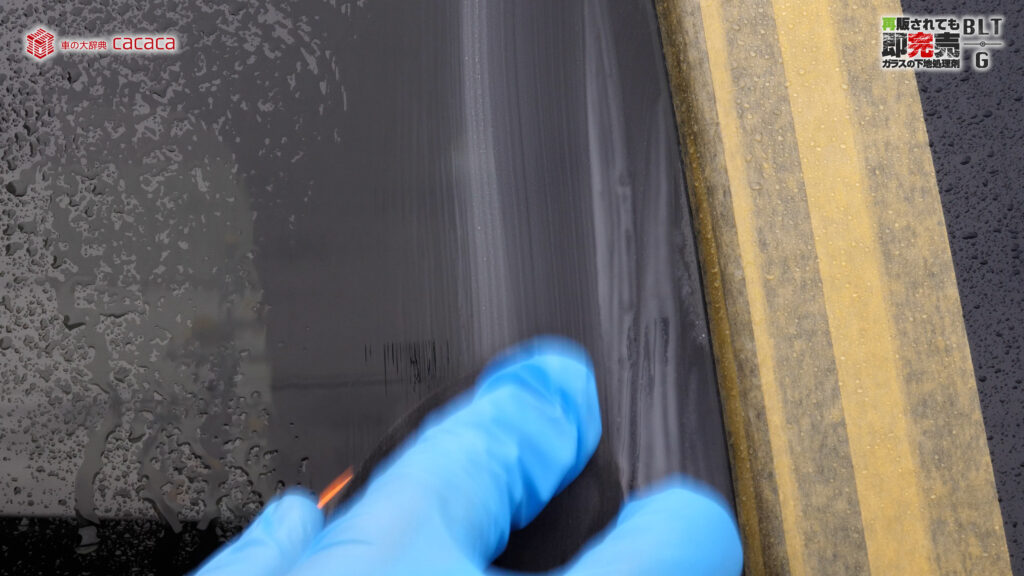 こういう風に弾かなくなるんだけど、水をかけたりガラス面を洗ってみると、増粘剤とか何なのかは僕には分からないんですが、それが剥がれたときに「あれ?油膜残ってるじゃん」っていうケースが結構あったんです。