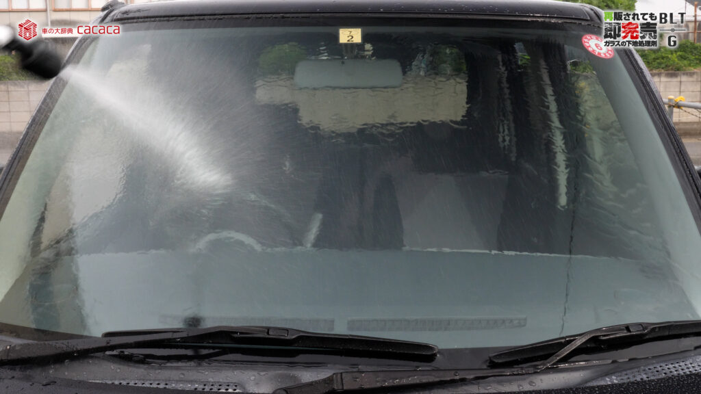 早速 施工していこうと思います。まずフロントガラスで試したいなと思うので、水をかけてみます。