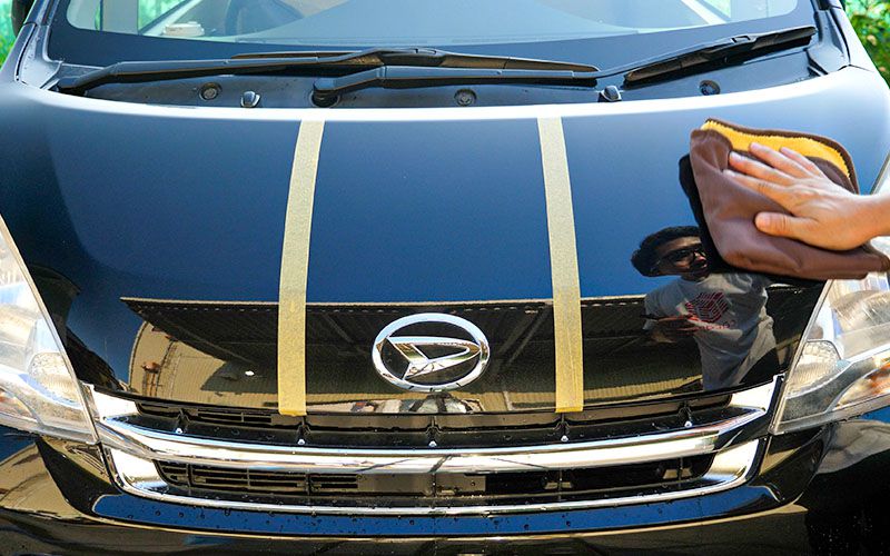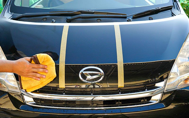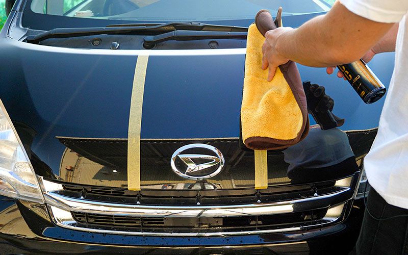 『CCウォーターウェットクロス』はガラス系コーティング車のお手入れ用ということなので、まずは両サイドに『CCウォーターゴールドプレミア』を施工します。