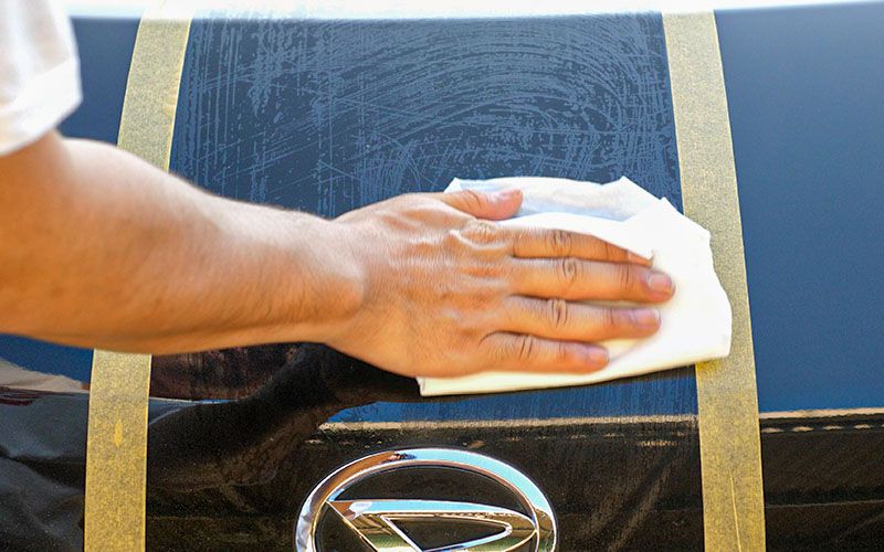 右:『CCウォーターゴールドプレミア』施工後、『CCウォーターウェットクロス』で2回拭く