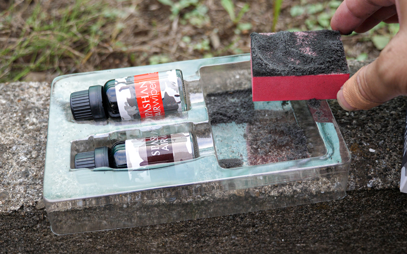 『エアワイパー』は去年の5月に使用して保管しているつもりでしたがダメだったみたいです。なので、別にスポンジを用意して施工していきます。