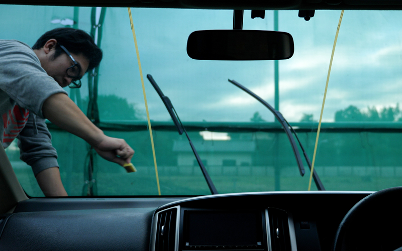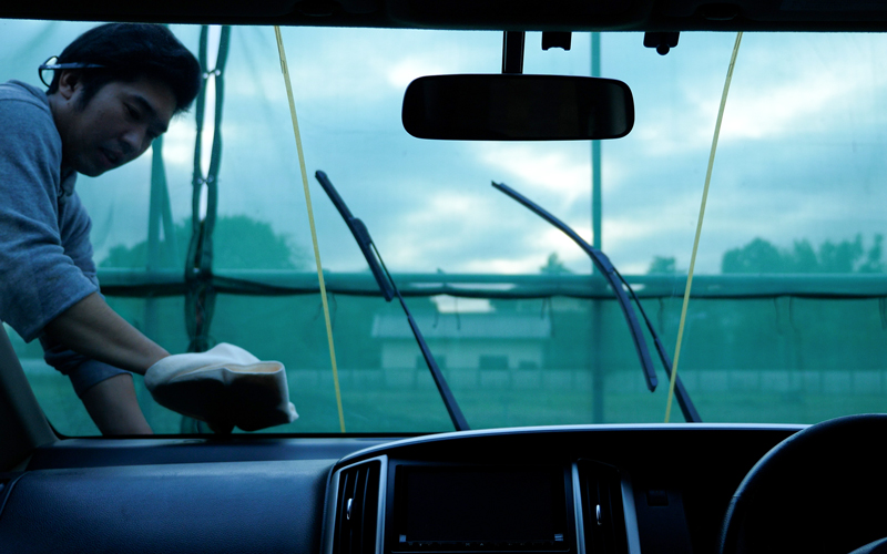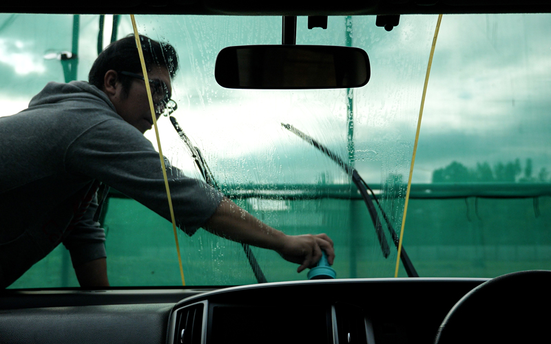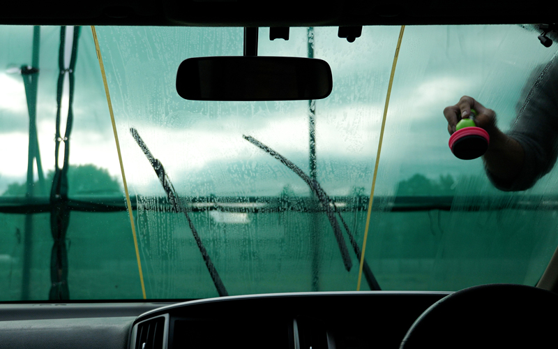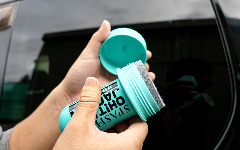 ①ガラスの油膜を綺麗に取り除いて乾いたタオルで拭き上げてください ②『オタマジャクソン』の溶剤がブラシに浸透するまでボトルを軽く押してください。ガラスへ均等に塗布してください ③撥水皮膜を形成するまで5分程度乾燥させてください ④絞ったマイクロベロア等で綺麗に拭いてください