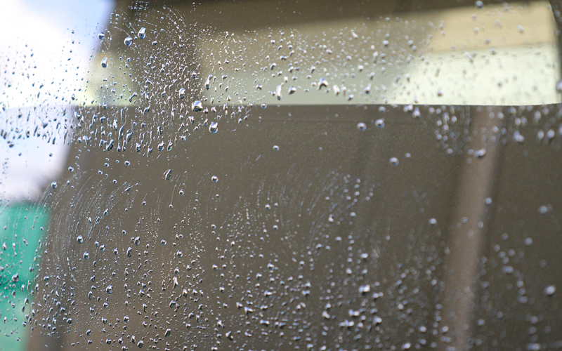 なにこれ?拭き上げの問題?撥水のムラのようにも見えます。