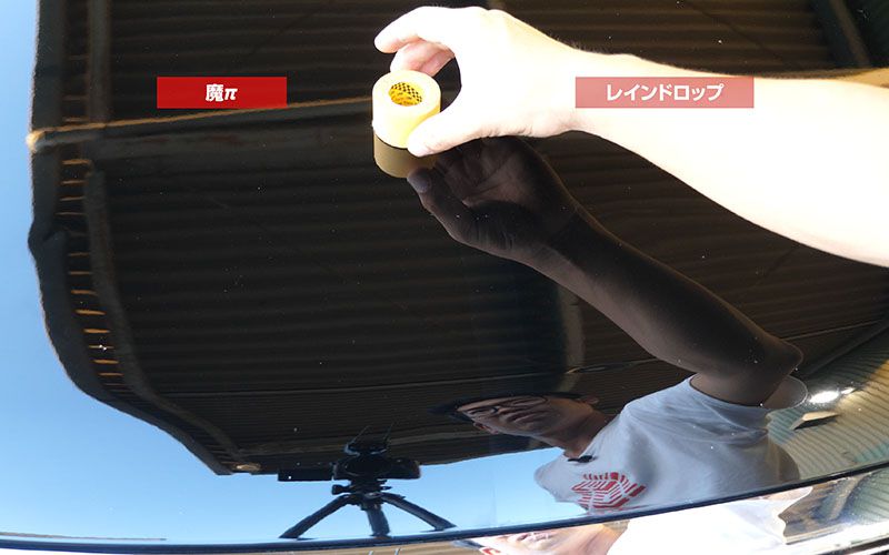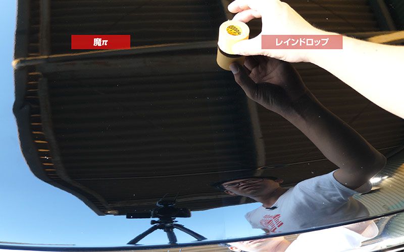 拭き上げたら左面に『魔π』、右面にソフト99『レインドロップ』を施工していきます。