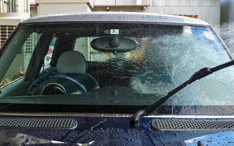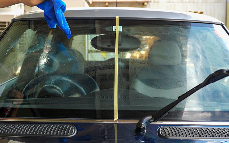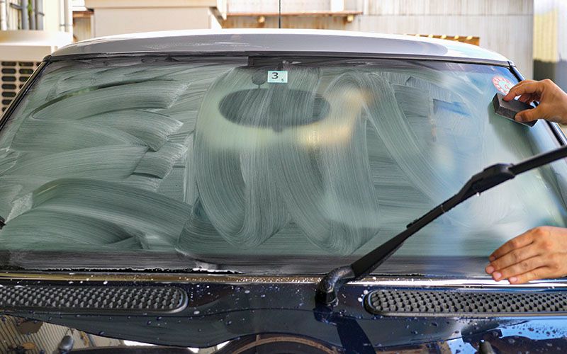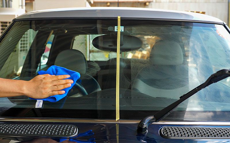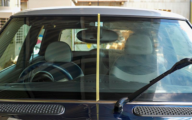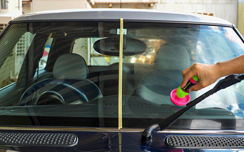 『魔π』はガラスにも使えるということなので、フロントガラスの左面に『魔π』、右面にクリンビュー『ハイブリッドストロングα』を施工したいと思います。