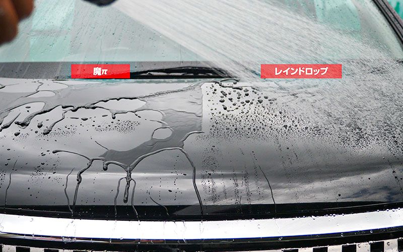 『レインドロップ』はバチバチの水弾きで水滴が玉になっていますが、『魔π』は疎水っぽい水弾きで水滴がベチャッとした感じです。