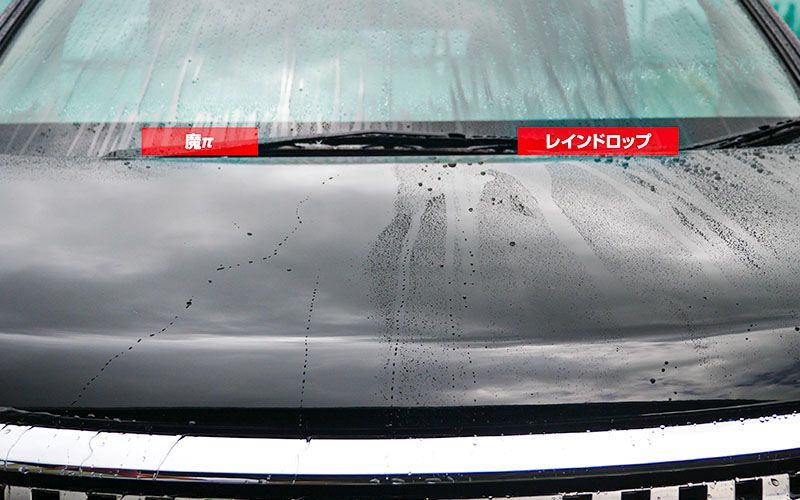 『レインドロップ』のようなバチバチの撥水で車を走らせたら水滴がビュンビュン飛んでいってくれますが、停車時に上手く水をかけても水滴が結構残りやすいです。
