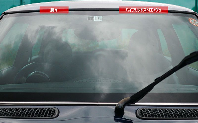フロントガラスに『魔π』と『ハイブリッドストロングα』を施工