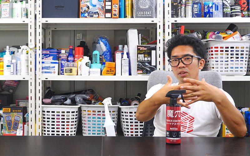 パッケージに「クイックコーティング カーケアスプレー」、使用方法に「ある程度の水気を拭き〝クイックコーティング〟を車にスプレーします」と記載されているので、Astreeというメーカーの魔πブランドのクイックコーティングなのかな?と思っています。