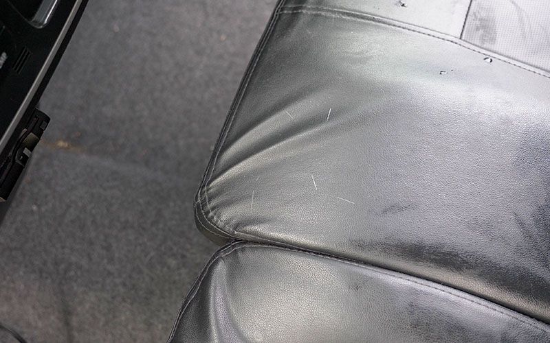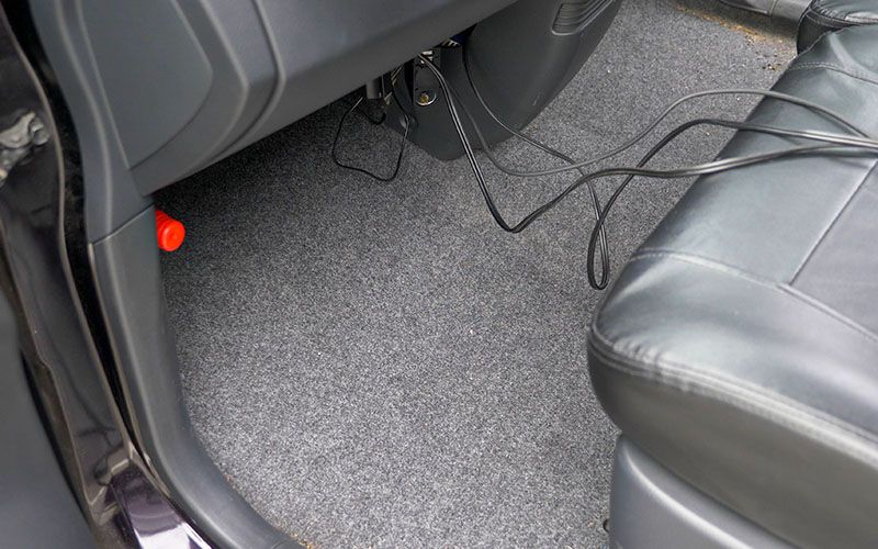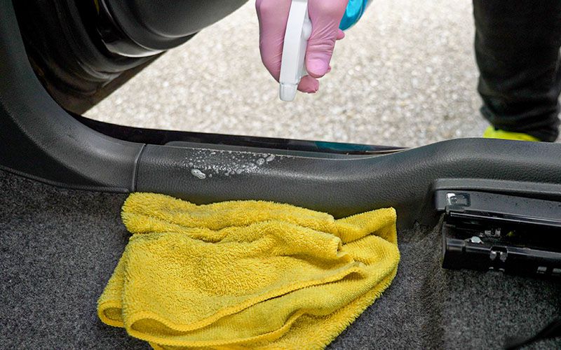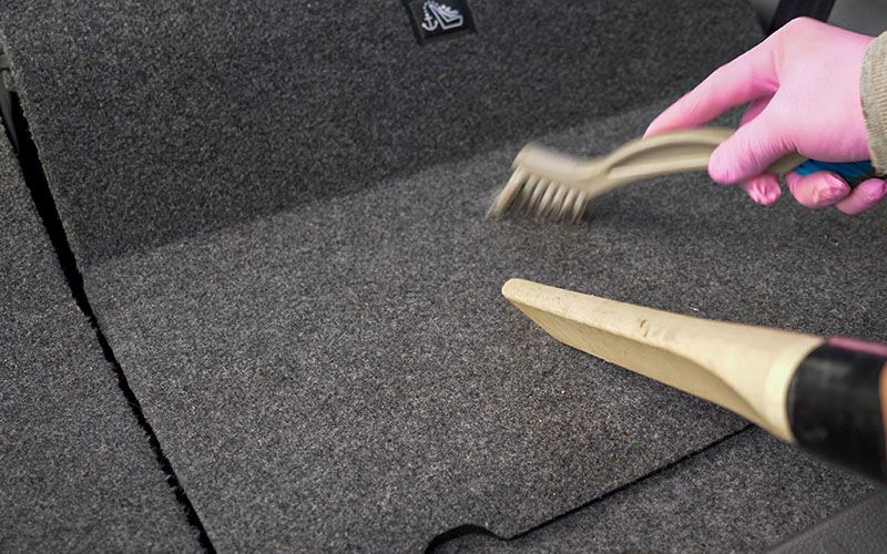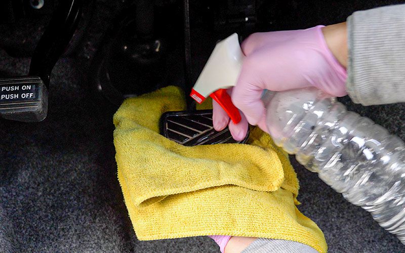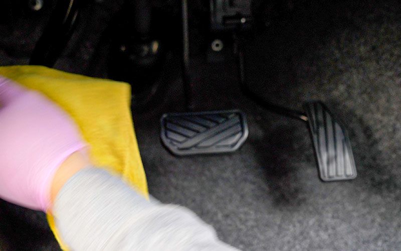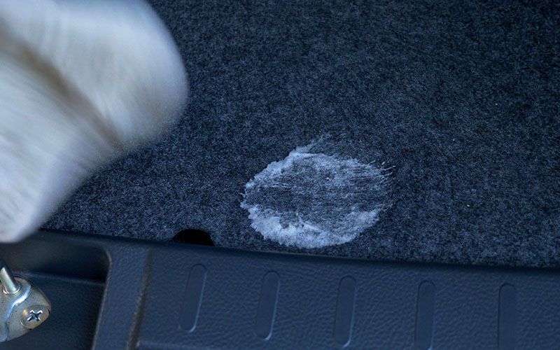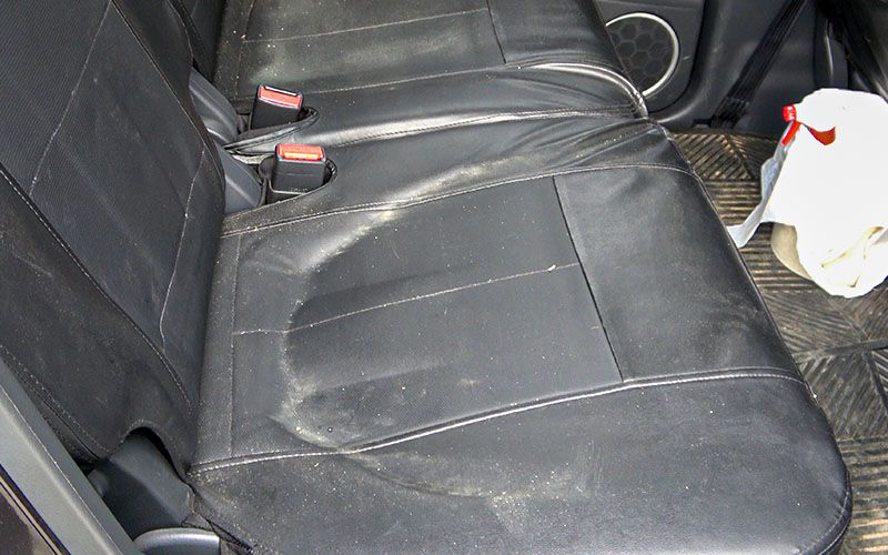 ルークリ洗剤を使って、シート下のシミを落としていきます。クロスでポンポン叩き込みます。