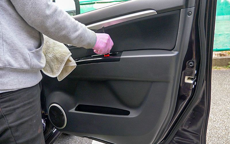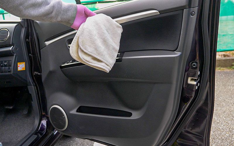 綺麗そうなドアパネルですが、どのくらい汚れているのかを確かめるために白いクロスを用意しました。