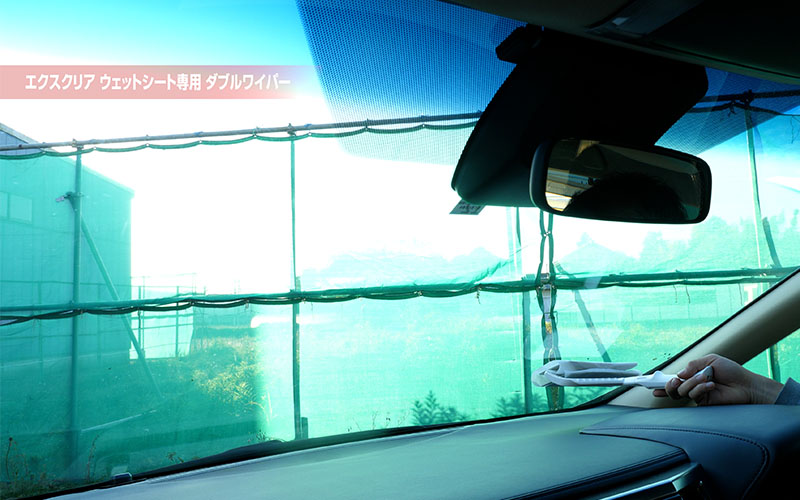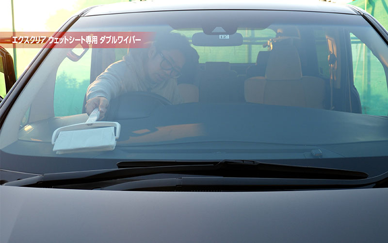 カーメイトのエクスクリアC130『内窓用ウェットシート』を購入してきたので、『ダブルワイパー』にセットして拭いていきます。
