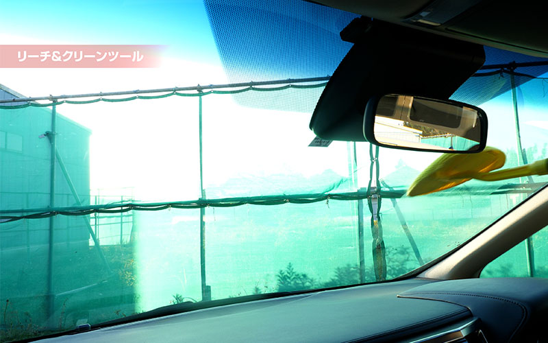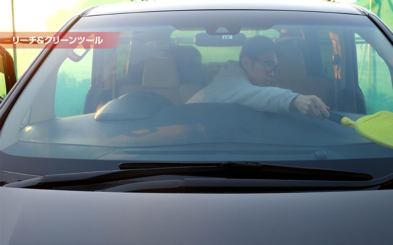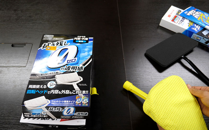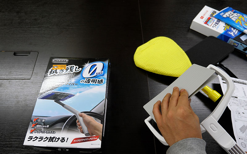 ツールを使ってフロントガラスの内窓を拭いてみる