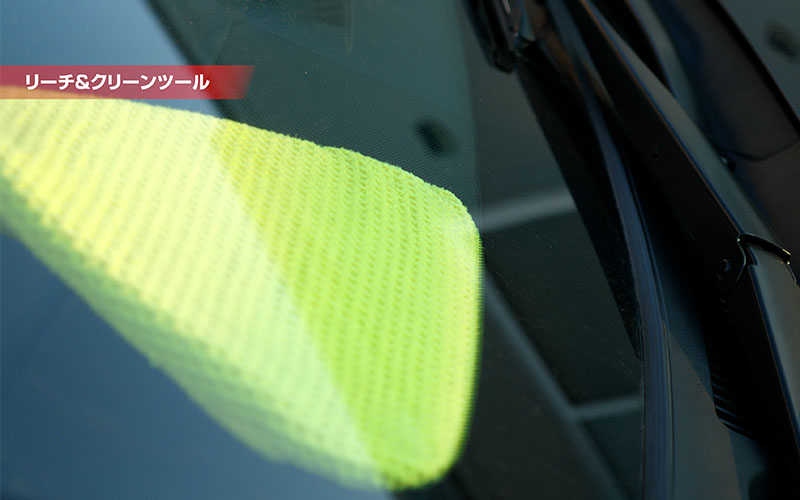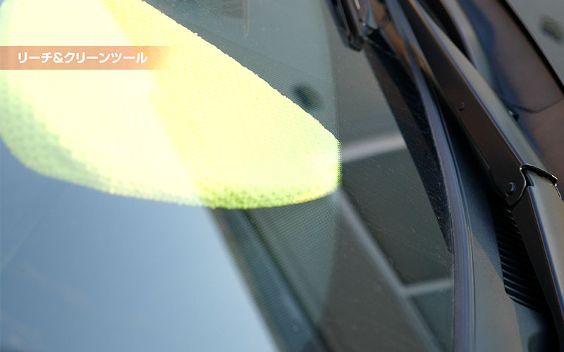 『リーチ&クリーンツール』と同じメーカーのKURE『インビジブルガラス』を使って拭いていきます。