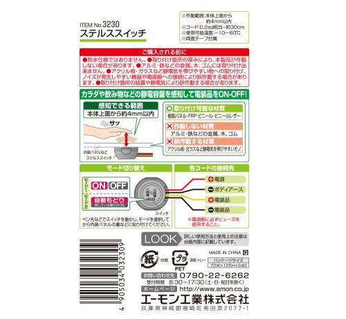 500mA以下の物にしか取り付けられない、感知できる範囲が本体上面から約4mm以内、取り付けられる材質も限定されているので、購入を考えている方は条件をよく考えてください!