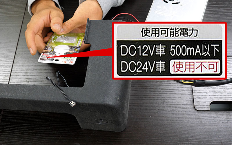 この電源が12VでLEDの商品電力が500mA以上なのですが、パッケージに「DC12V車の場合500mA以下、DC24V車の場合は使用不可」という記載がありました。