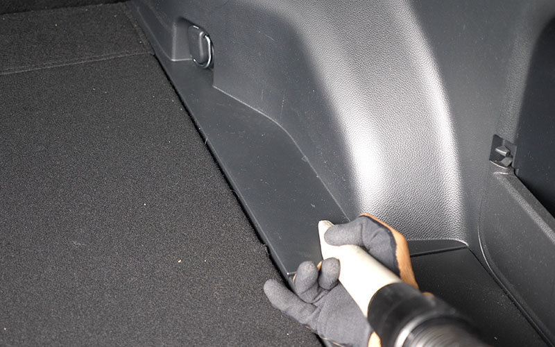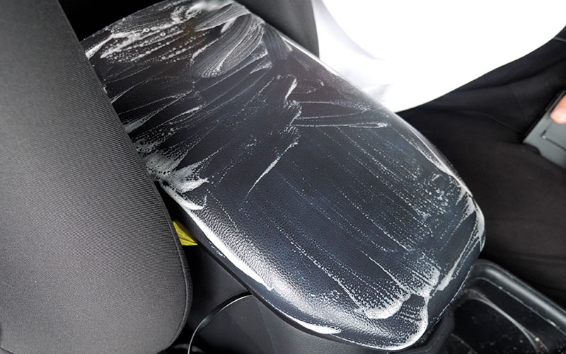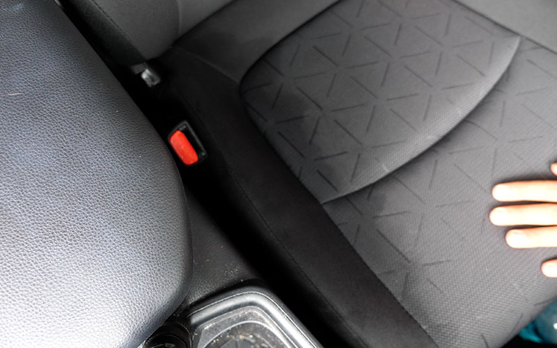 続いてシートのシミ取りをしていきます。そんな目立った汚れはないんですが、黒いので汚れてるように見えないだけかもしれません。