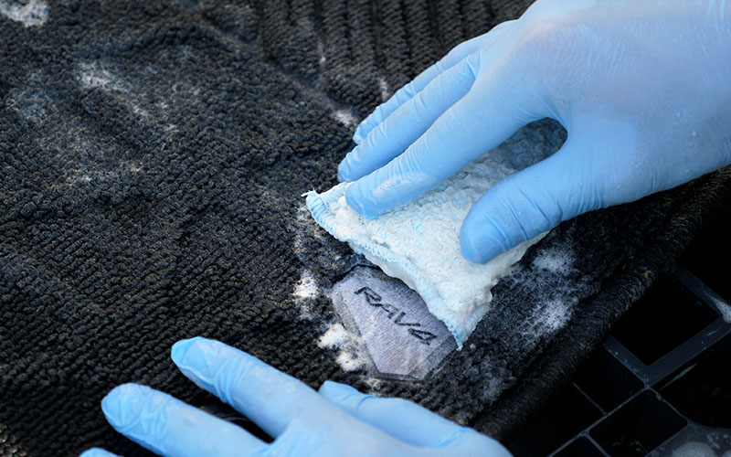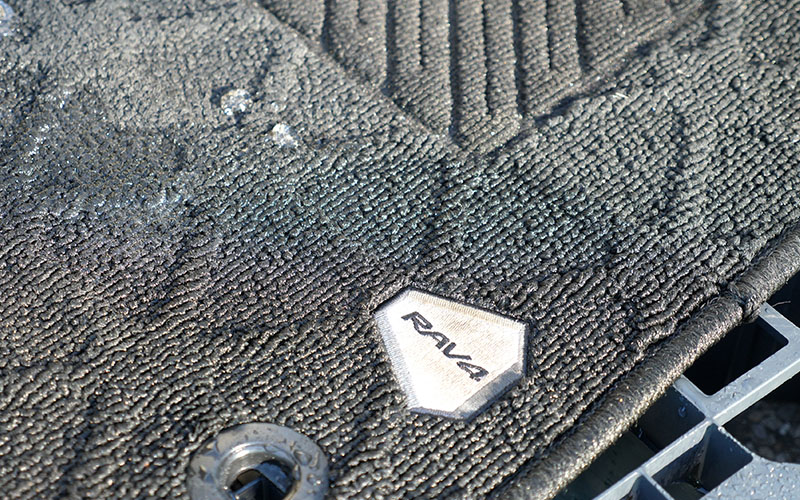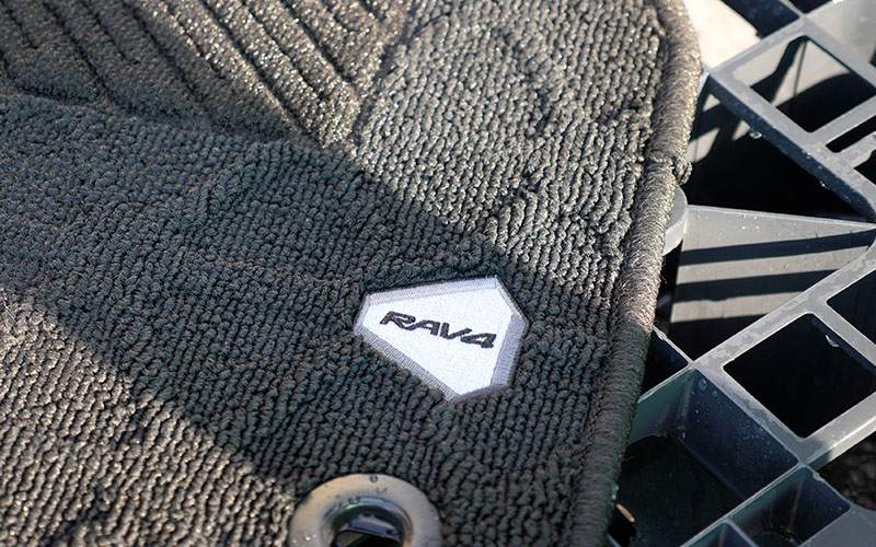 今回はフロアマットのRAV4のマークが茶色くなっているのがすごく気になるので、汚れが落ちるかどうか試していきます。